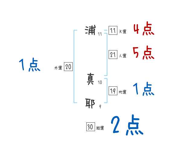 浦真耶さんの画数の鑑定結果