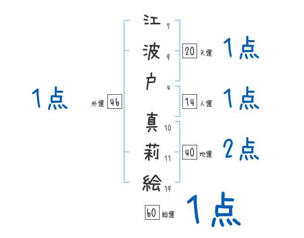 人運![]() | 江波戸真莉絵さんの人運は14画の1つ星!人に対して優しいがストレスを溜め込みがち。人間関係のトラブルを避けるよう気をつけましょう。 性格や才能などを表す2番目に重要な運勢です。人間関係や協調性、社会的な成功に影響します。主に20歳から50歳ぐらいまでの中年期の運勢を表します。 |