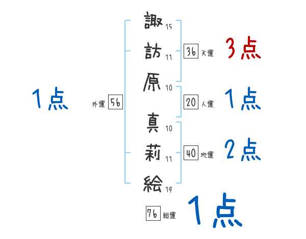 諏訪原真莉絵さんの画数の鑑定結果