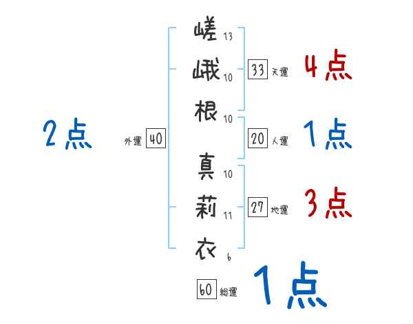 嵯峨根真莉衣さんの画数の鑑定結果