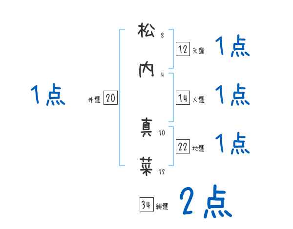 松内真菜さんの画数の鑑定結果