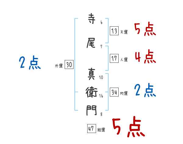 寺尾真衛門さんの画数の鑑定結果