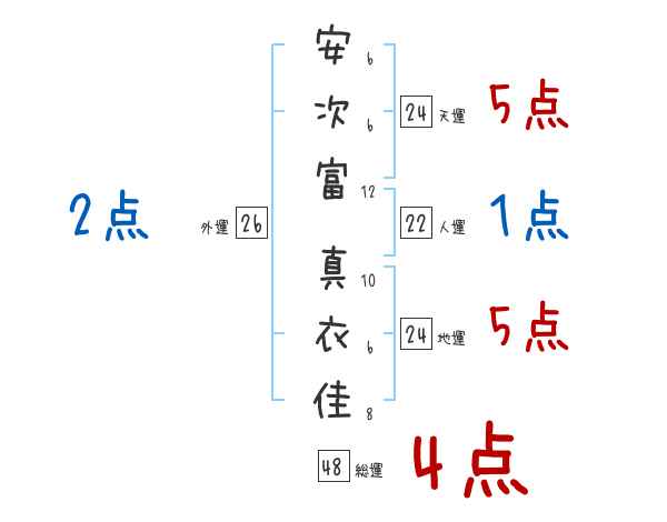 安次富真衣佳さんの画数の鑑定結果