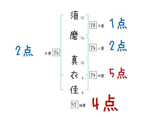 須磨真衣佳さんの画数の鑑定結果