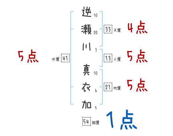 逆瀬川真衣加さんの画数の鑑定結果
