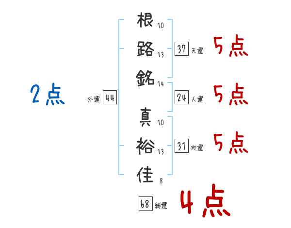 総運![]() | 根路銘真裕佳さんの総運は68画の4つ星!潜在能力が高く集中力が高い。勤勉に励み発展する。 あなたの人生を表す1番重要な運勢です。生涯を通じて影響する総合運となり、主に50歳以降の晩年期に影響を及ぼします。 |