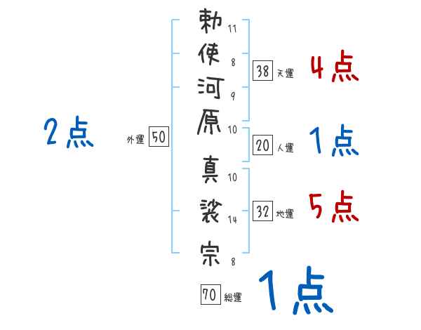 天運![]() | 勅使河原真裟宗さんの天運は38画の4つ星!温厚な性格で技術的な才能を発揮する。職人的な仕事に向いている。 家系が持つ宿命的な運勢を表します。祖先から受け継いだ苗字ですので自分の力が及びません。家柄を象徴します。 |