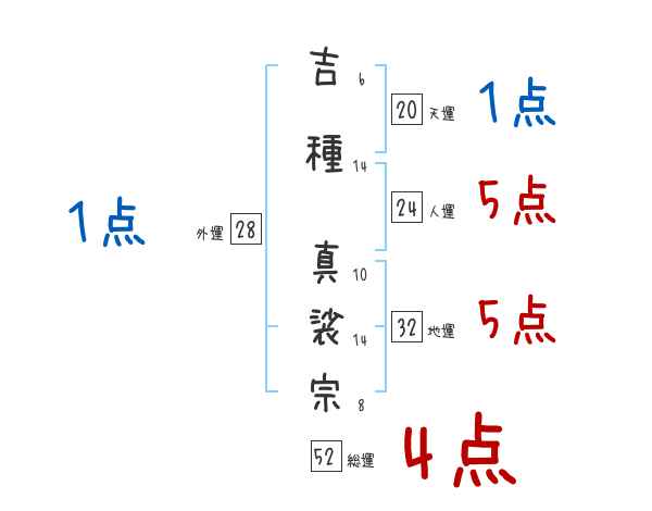吉種真裟宗さんの画数の鑑定結果