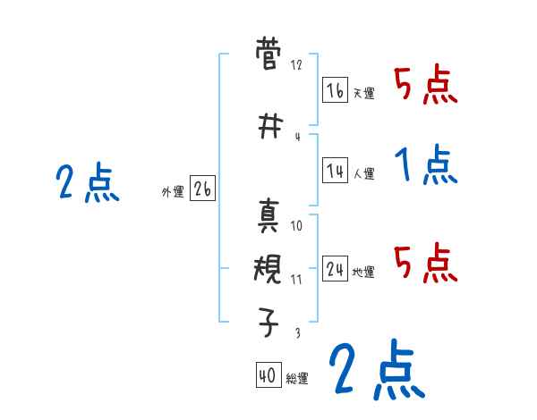 菅井真規子さんの画数の鑑定結果