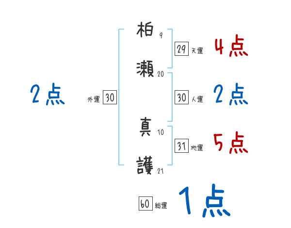 天運![]() | 柏瀬真護さんの天運は29画の4つ星!完全主義で才能がある。厳格な心の持ち主。 家系が持つ宿命的な運勢を表します。祖先から受け継いだ苗字ですので自分の力が及びません。家柄を象徴します。 |