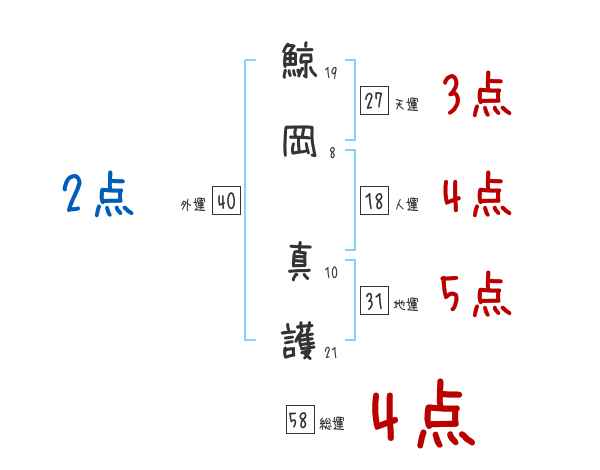 鯨岡真護さんの画数の鑑定結果