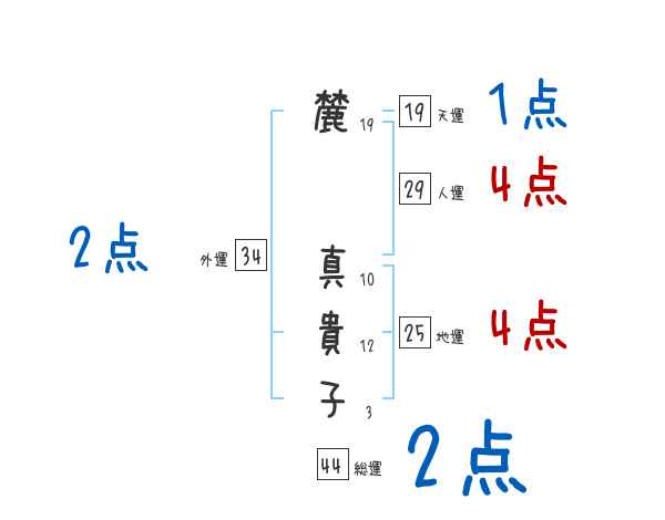 外運![]() | 麓真貴子さんの外運は34画の2つ星!独創性に優れるが、自尊心が強く災難に注意しましょう。 生活面を象徴する運勢です。外部から受ける影響力を表し、結婚運、家庭運や職場、環境への順応性を表します。 |