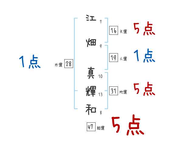 総運![]() | 江畑真輝和さんの総運は47画の5つ星!実力が開花し発展する円満な人生。財に恵まれる。 あなたの人生を表す1番重要な運勢です。生涯を通じて影響する総合運となり、主に50歳以降の晩年期に影響を及ぼします。 |