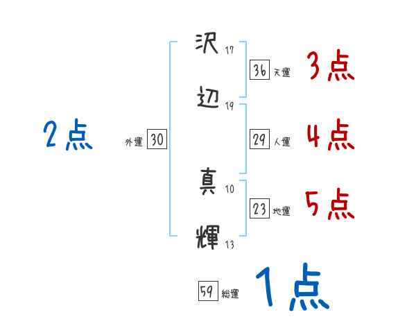 沢辺真輝さんの画数の鑑定結果