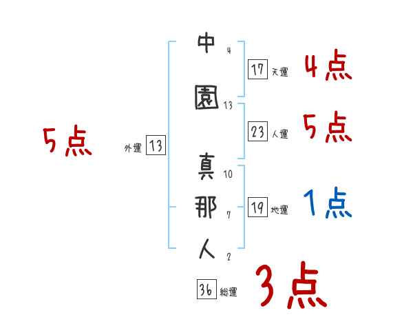 中園真那人さんの画数の鑑定結果