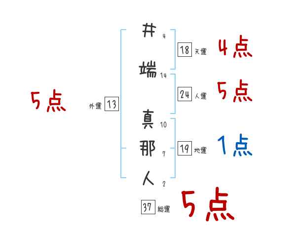 井端真那人さんの画数の鑑定結果
