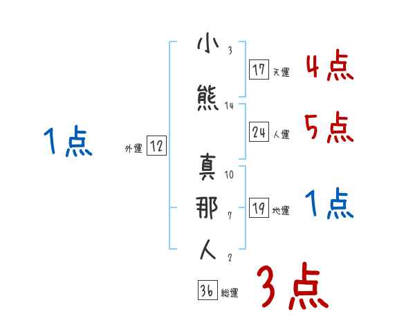 小熊真那人さんの画数の鑑定結果