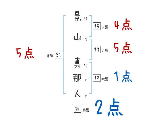 景山真那人さんの画数の鑑定結果