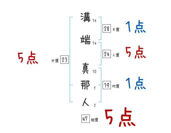 天運![]() | 溝端真那人さんの天運は28画の1つ星!家庭環境に注意。スポーツで活躍できる能力があるかも。 家系が持つ宿命的な運勢を表します。祖先から受け継いだ苗字ですので自分の力が及びません。家柄を象徴します。 |