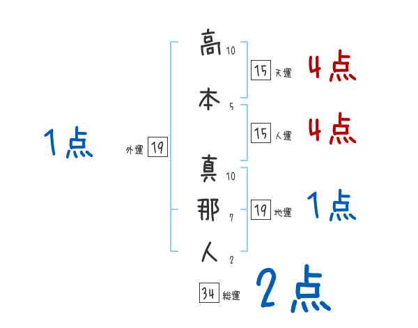 高本真那人さんの画数の鑑定結果