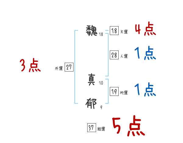 魏真郁さんの画数の鑑定結果