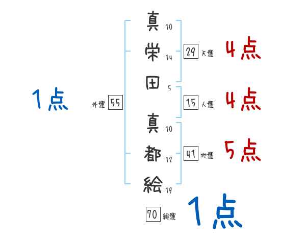 天運![]() | 真栄田真都絵さんの天運は29画の4つ星!完全主義で才能がある。厳格な心の持ち主。 家系が持つ宿命的な運勢を表します。祖先から受け継いだ苗字ですので自分の力が及びません。家柄を象徴します。 |