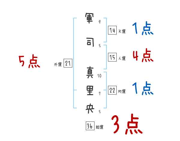 軍司真里央さんの画数の鑑定結果