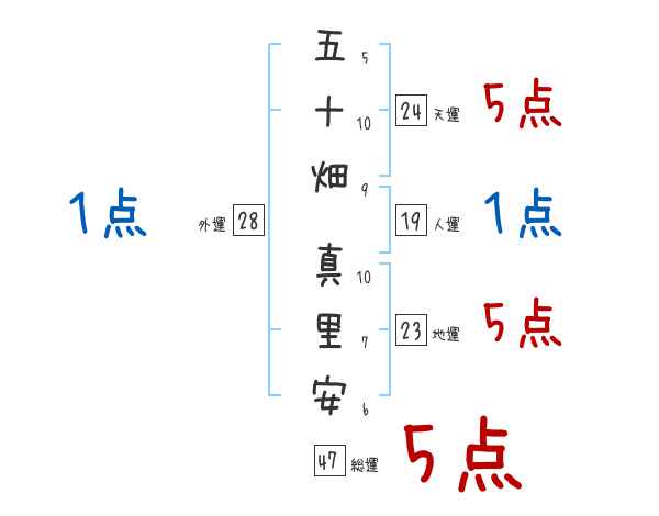 外運![]() | 五十畑真里安さんの外運は28画の1つ星!家庭環境に注意。スポーツで活躍できる能力があるかも。 生活面を象徴する運勢です。外部から受ける影響力を表し、結婚運、家庭運や職場、環境への順応性を表します。 |