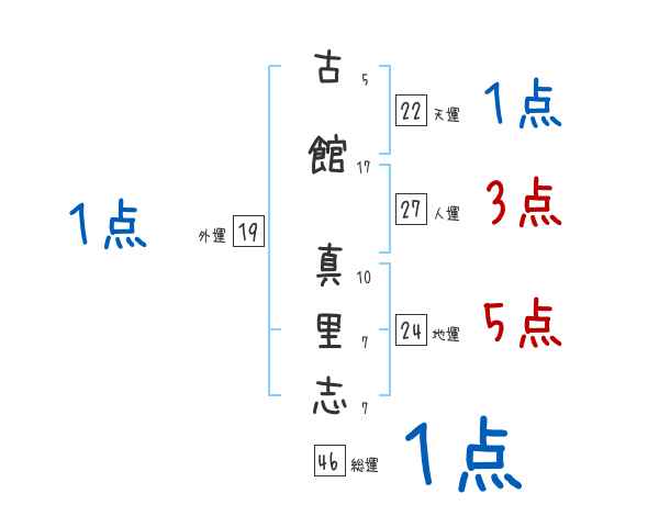 古館真里志さんの画数の鑑定結果