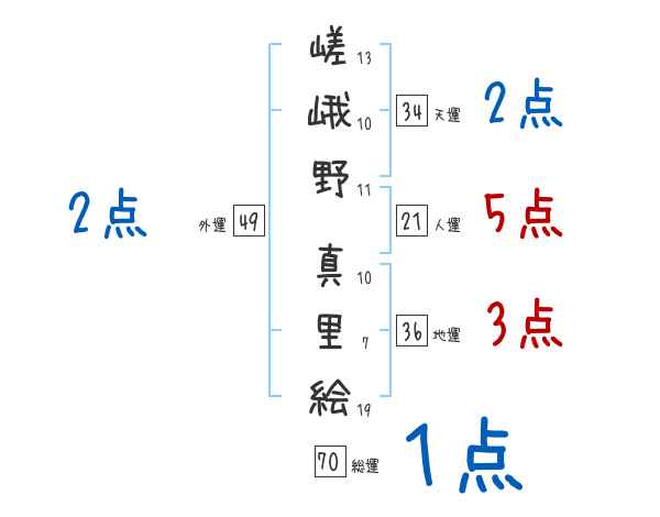 嵯峨野真里絵さんの画数の鑑定結果
