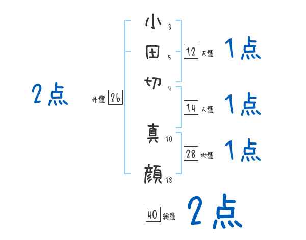 小田切真顔さんの画数の鑑定結果