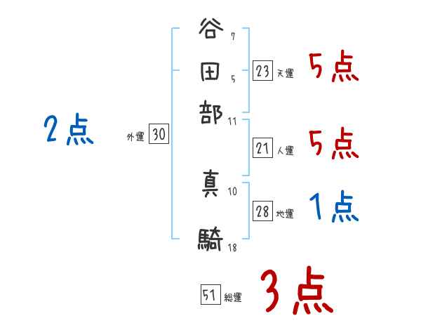 谷田部真騎さんの画数の鑑定結果