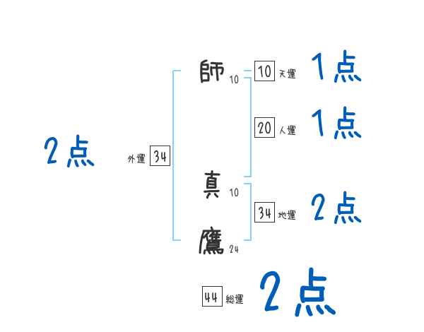 総運![]() | 師真鷹さんの総運は44画の2つ星!誠実で慎重な性格。物事を考えすぎないように注意しましょう。 あなたの人生を表す1番重要な運勢です。生涯を通じて影響する総合運となり、主に50歳以降の晩年期に影響を及ぼします。 |