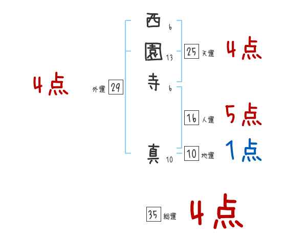 西園寺真さんの画数の鑑定結果