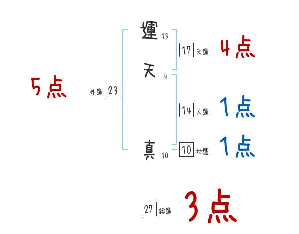 運天真さんの画数の鑑定結果
