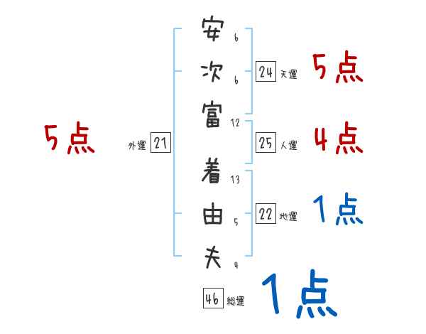 安次富着由夫さんの画数の鑑定結果