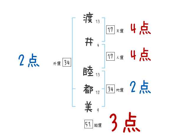総運![]() | 渡井睦都美さんの総運は51画の3つ星!変化が激しく、危険に注意。堅実な性格。 あなたの人生を表す1番重要な運勢です。生涯を通じて影響する総合運となり、主に50歳以降の晩年期に影響を及ぼします。 |