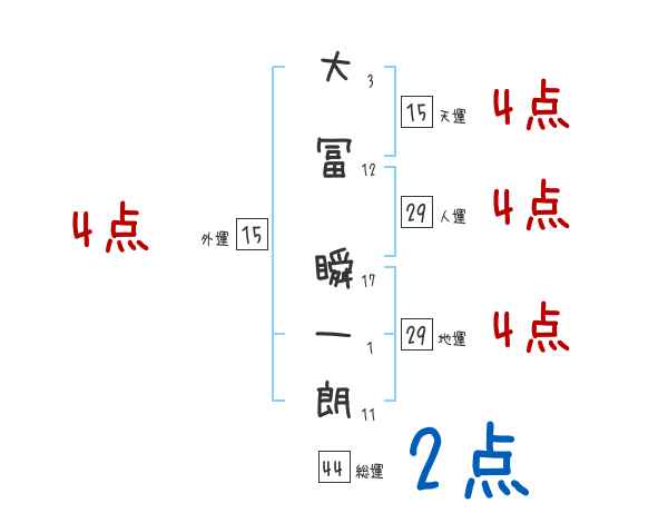 大冨瞬一朗さんの画数の鑑定結果
