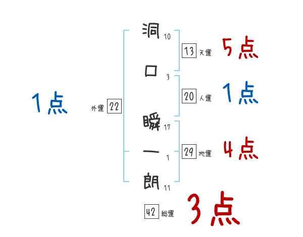 洞口瞬一朗さんの画数の鑑定結果