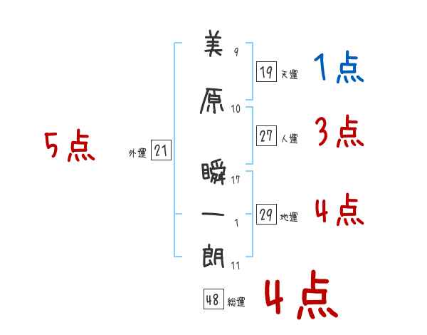 外運![]() | 美原瞬一朗さんの外運は21画の5つ星!統率力がある。独立し成功する。名誉を手に入れる。 生活面を象徴する運勢です。外部から受ける影響力を表し、結婚運、家庭運や職場、環境への順応性を表します。 |