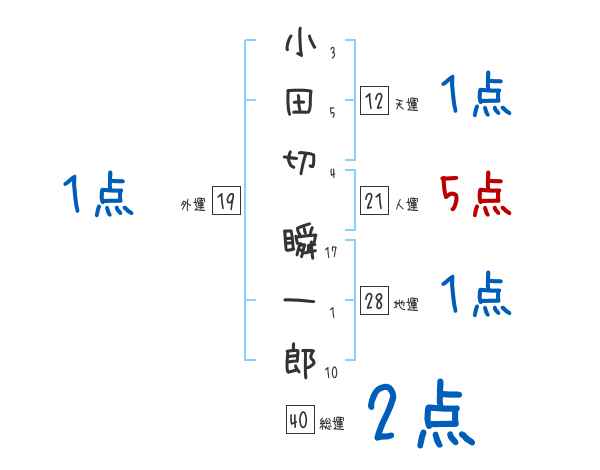 地運![]() | 小田切瞬一郎さんの地運は28画の1つ星!家庭環境に注意。スポーツで活躍できる能力があるかも。 個性を表す基礎的な運勢です。性格形成や対人関係、行動力など家庭環境に影響されます。主に誕生してから20歳くらいまでの若年期の運勢を表します。 |
