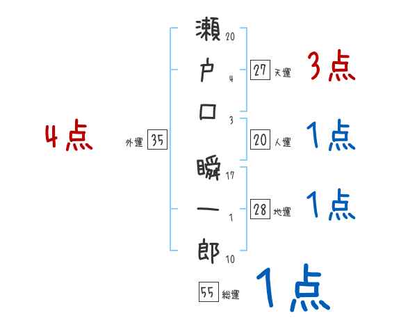 瀬戸口瞬一郎さんの画数の鑑定結果