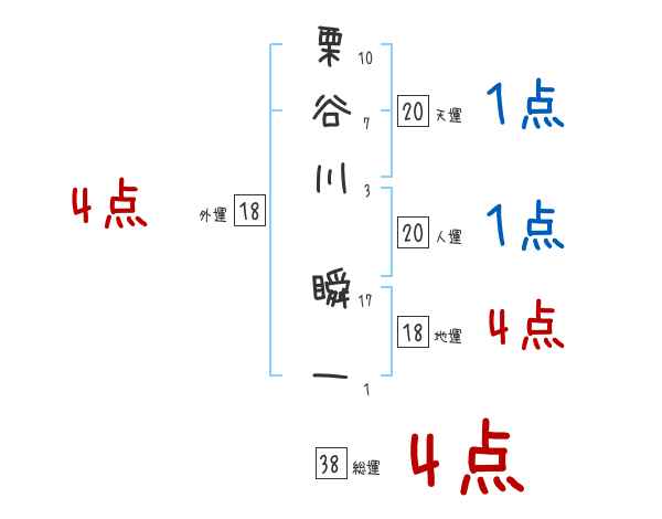 栗谷川瞬一さんの画数の鑑定結果