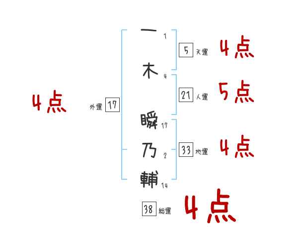 外運![]() | 一木瞬乃輔さんの外運は17画の4つ星!積極的な行動力。地位を気づき財産を手に入れる。純粋な心と直感力。 生活面を象徴する運勢です。外部から受ける影響力を表し、結婚運、家庭運や職場、環境への順応性を表します。 |