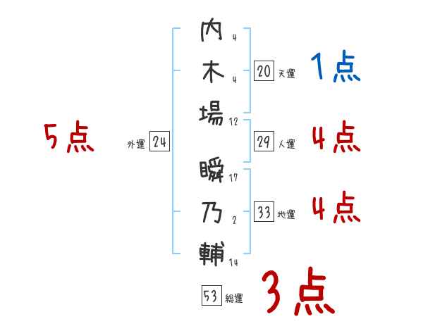 内木場瞬乃輔さんの画数の鑑定結果