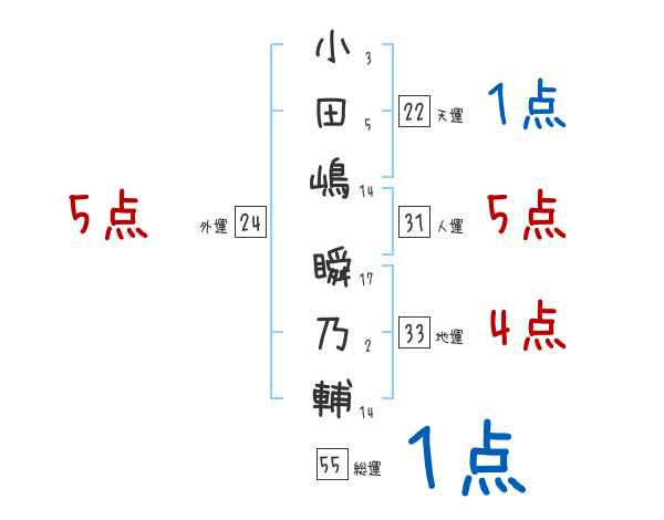 小田嶋瞬乃輔さんの画数の鑑定結果