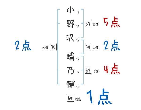 小野沢瞬乃輔さんの画数の鑑定結果