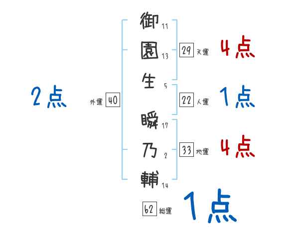 御園生瞬乃輔さんの画数の鑑定結果