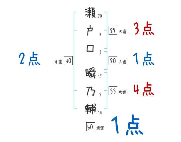 瀬戸口瞬乃輔さんの画数の鑑定結果
