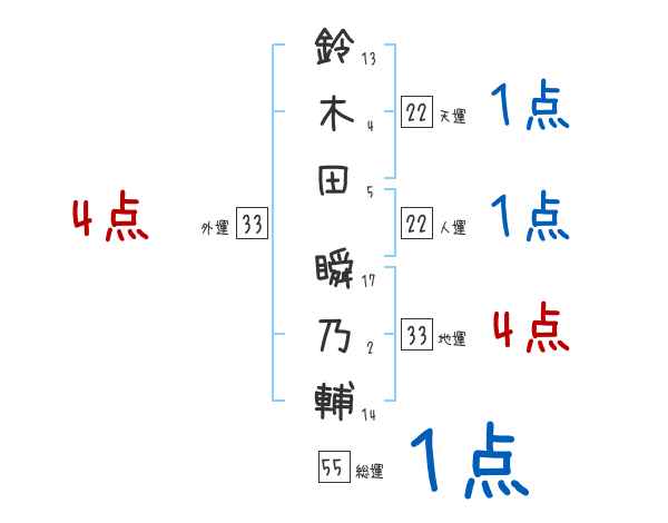 鈴木田瞬乃輔さんの画数の鑑定結果